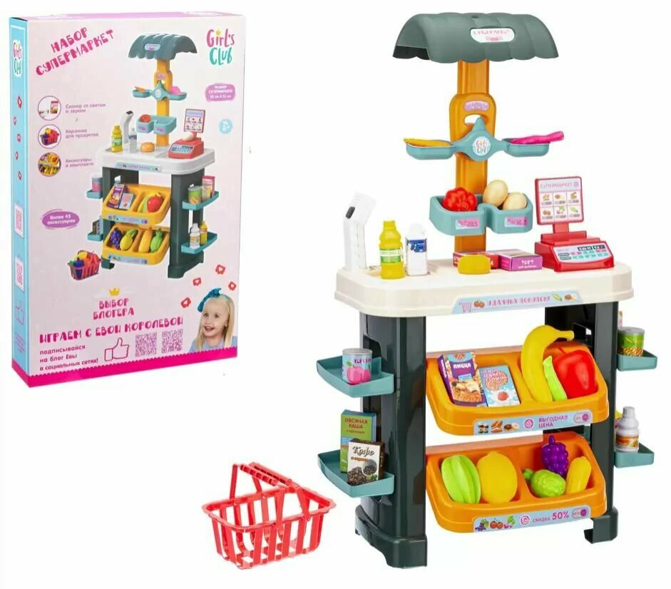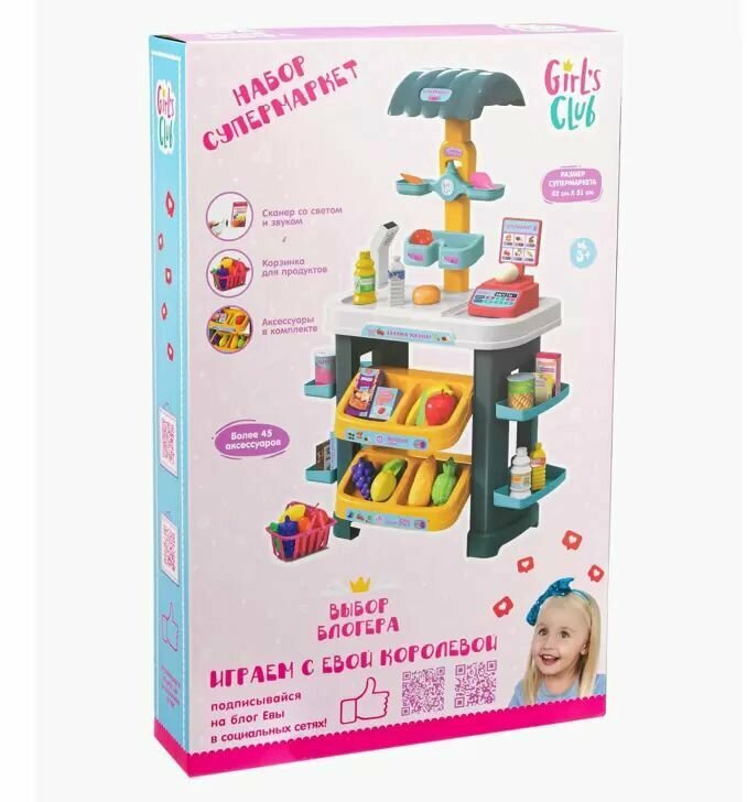 Набор игровой Girl's club, Супермаркет касса на бат. более 45 аксес. информация: