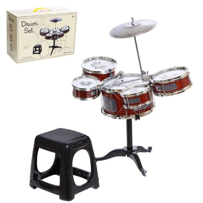 10 цен на Барабанная установка «Рок», 5 барабанов, тарелка, палочки, стульчик