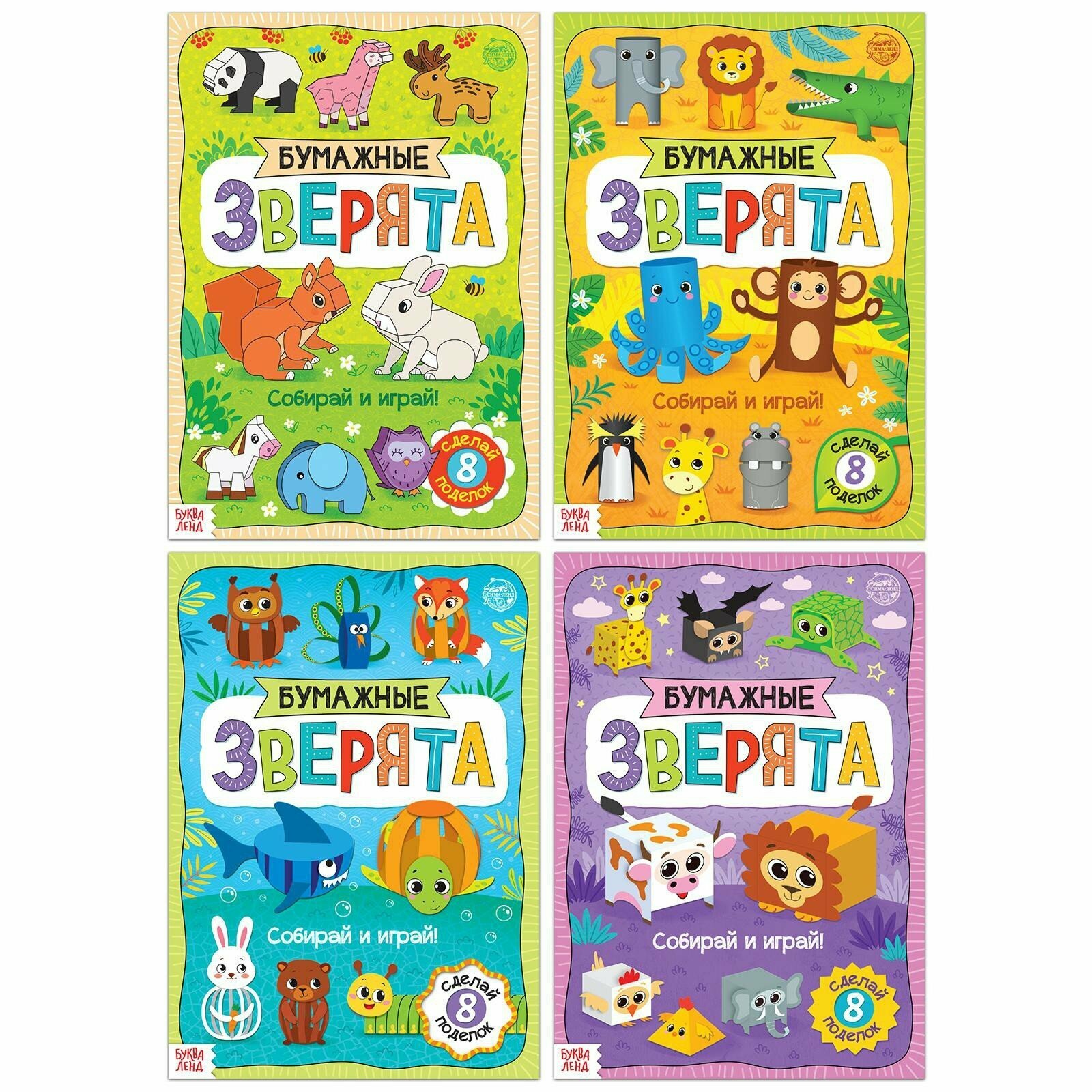 Набор книжек- вырезалок «Бумажные зверята», 4 шт. по 20 стр., формат А4 информация: