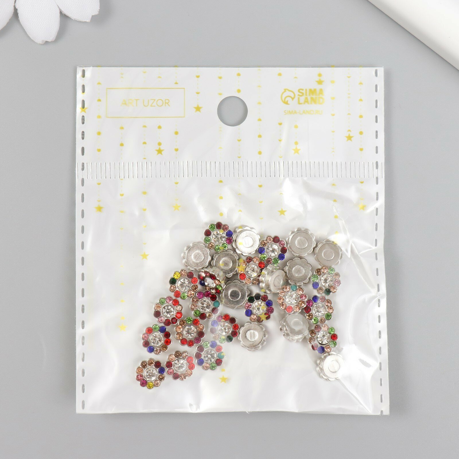 Декор для творчества пластик "Цветок цветные кристаллы" набор 30 шт серебро микс 0,8х0,8 см 975092