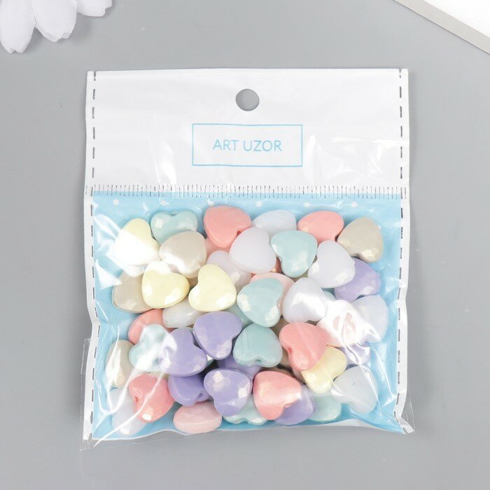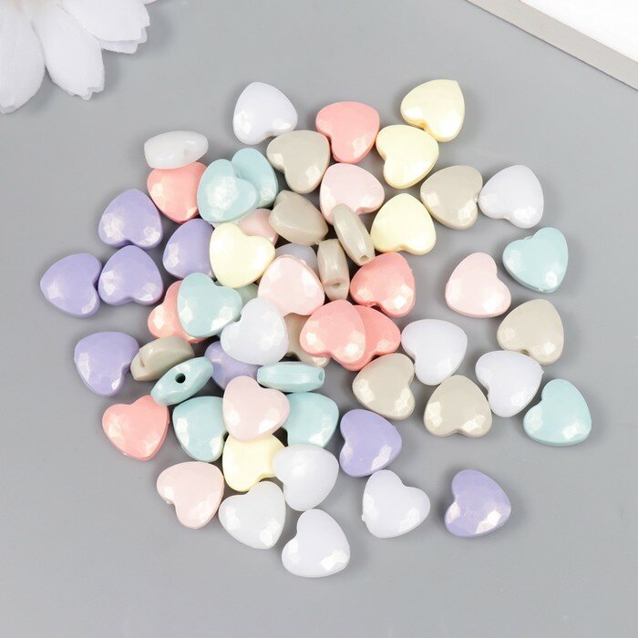 Бусины для творчества пластик "Сердце грани. Пастель" жемчужные набор 20 гр 0,5х1,1х1,1 см информация: