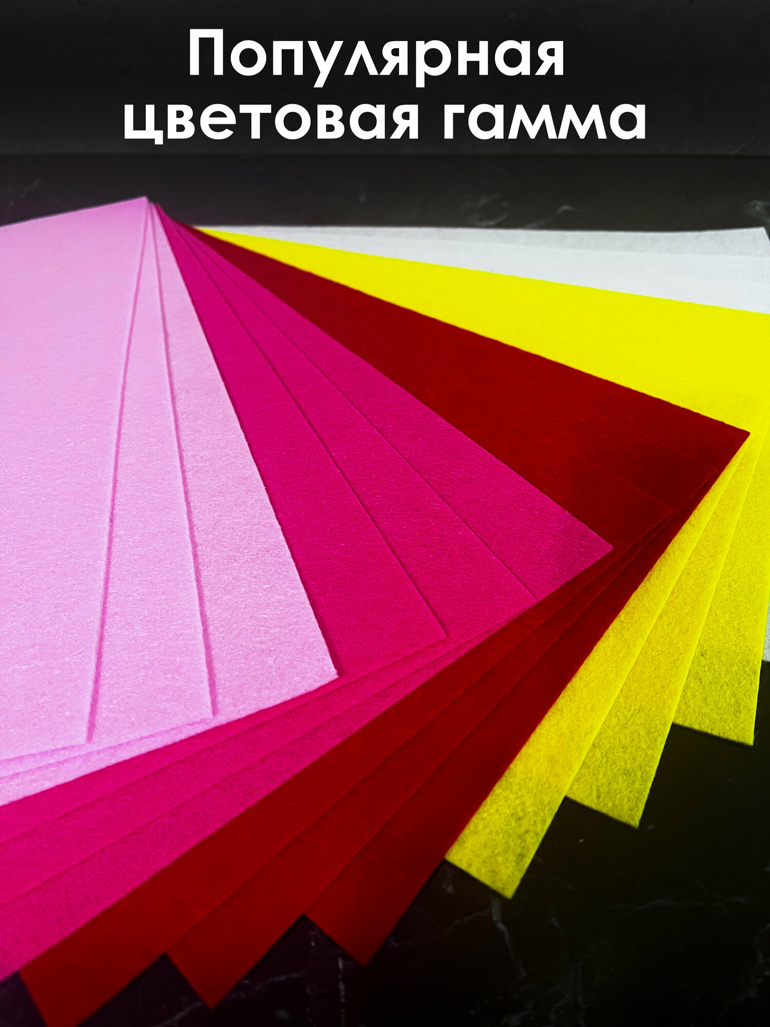 Фетр для рукоделия набор 20х30см - А4 - 10 листов, 10 цветов
