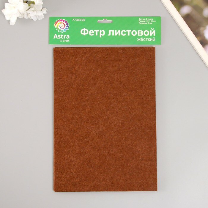 10 цен на Набор жесткого фетра "Астра" (3 шт) коричневый, 3 мм, 20х30 см