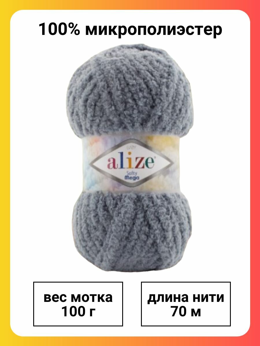 Пряжа Softy mega, Alize, принт - 5939, 100% микрополиэстер, 5 мотков, 100 г, 70 м. 1 294 ₽
