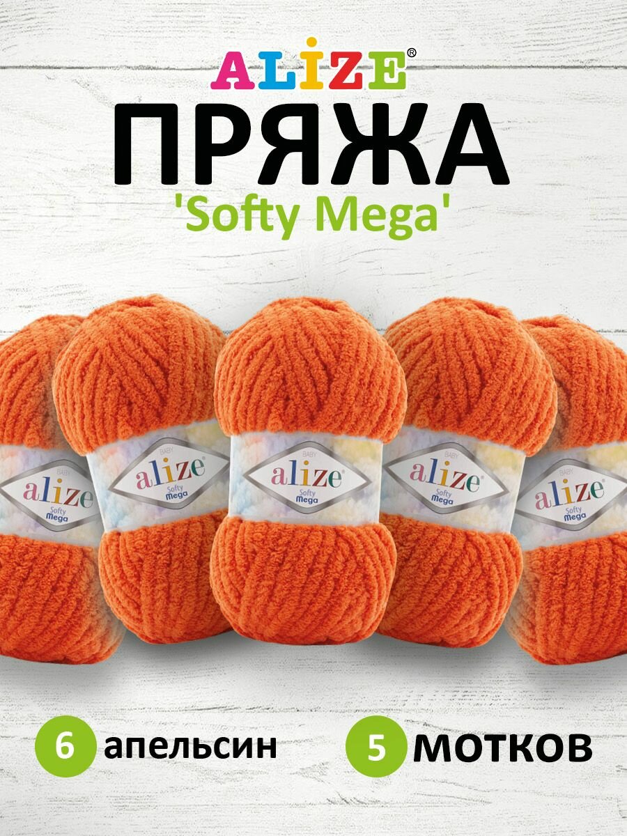 10 цен на Пряжа Softy mega, Alize, оранжевый - 06, 100% микрополиэстер, 5 мотков, 100 г., 70 м.