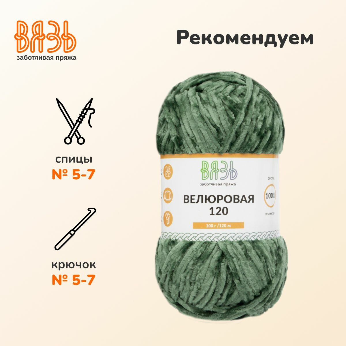 Пряжа для вязания Вязь 'Велюровая 120', 100г, 120м (100% полиэстер) (15 зеленый), 3 мотка информация: