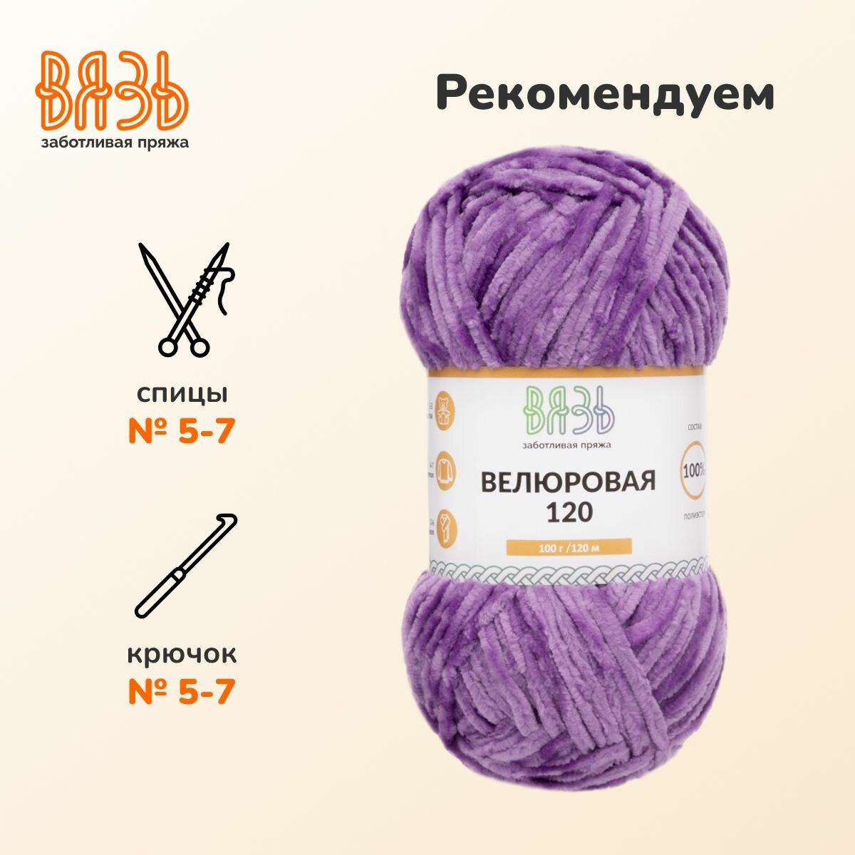 Отзывы на Пряжа для вязания Вязь 'Велюровая 120', 100г, 120м (100% полиэстер) (17 сиреневый), 3 мотка