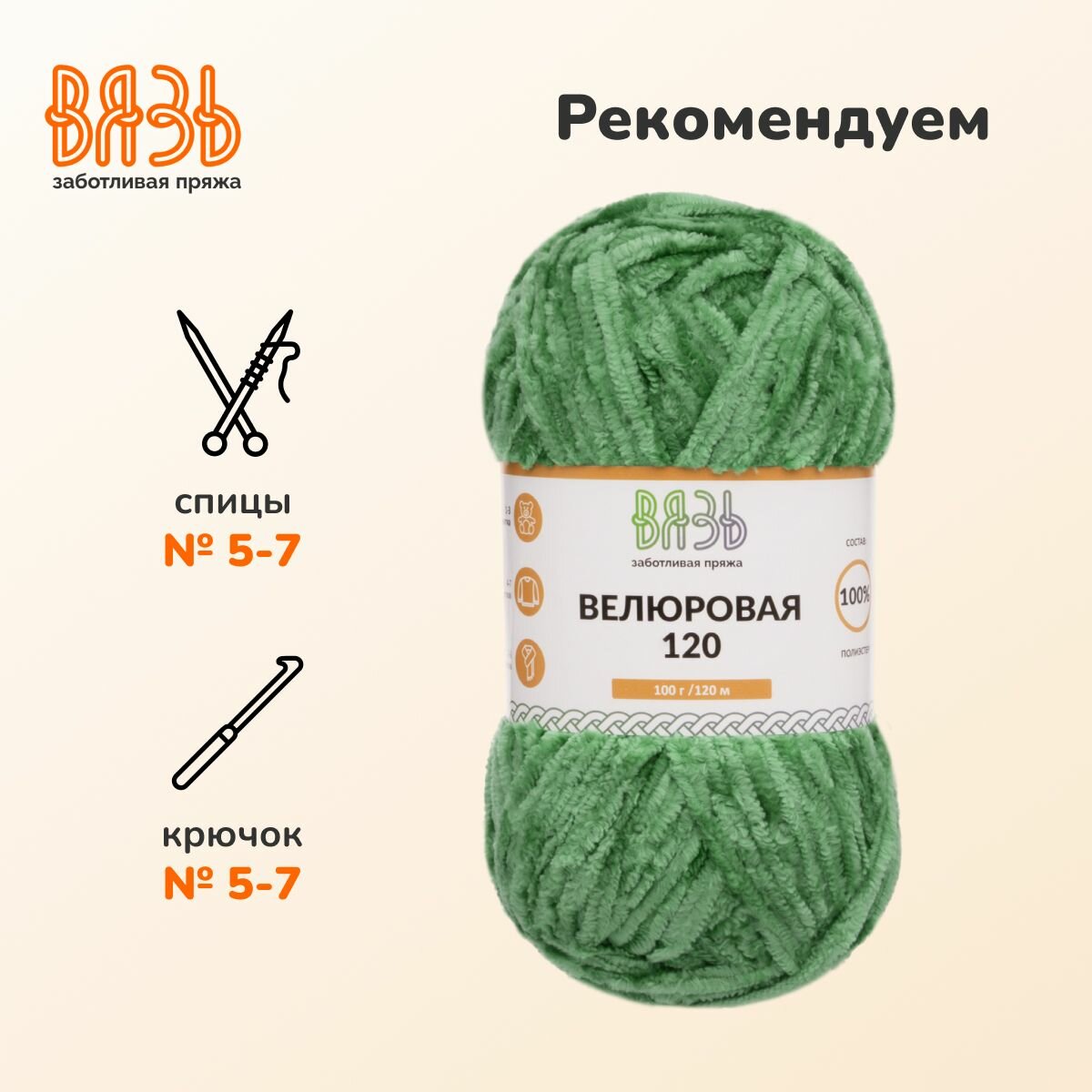 Отзывы на Пряжа для вязания Вязь 'Велюровая 120', 100г, 120м (100% полиэстер) (14 светло-зеленый), 3 мотка