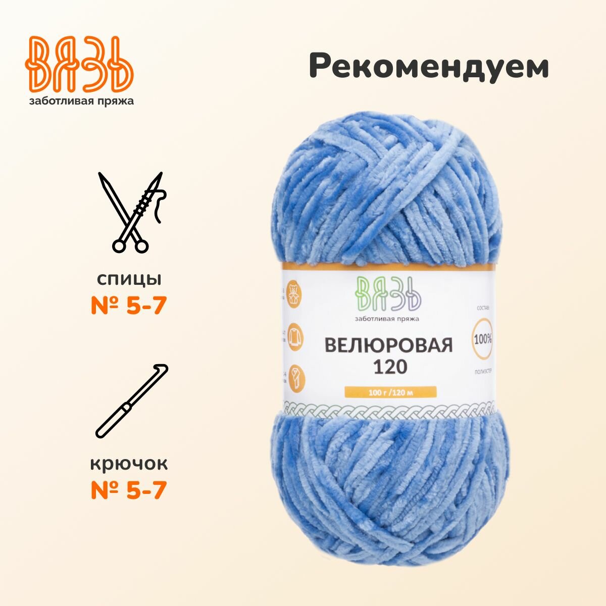 Отзывы на Пряжа для вязания Вязь 'Велюровая 120', 100г, 120м (100% полиэстер) (10 голубой), 3 мотка