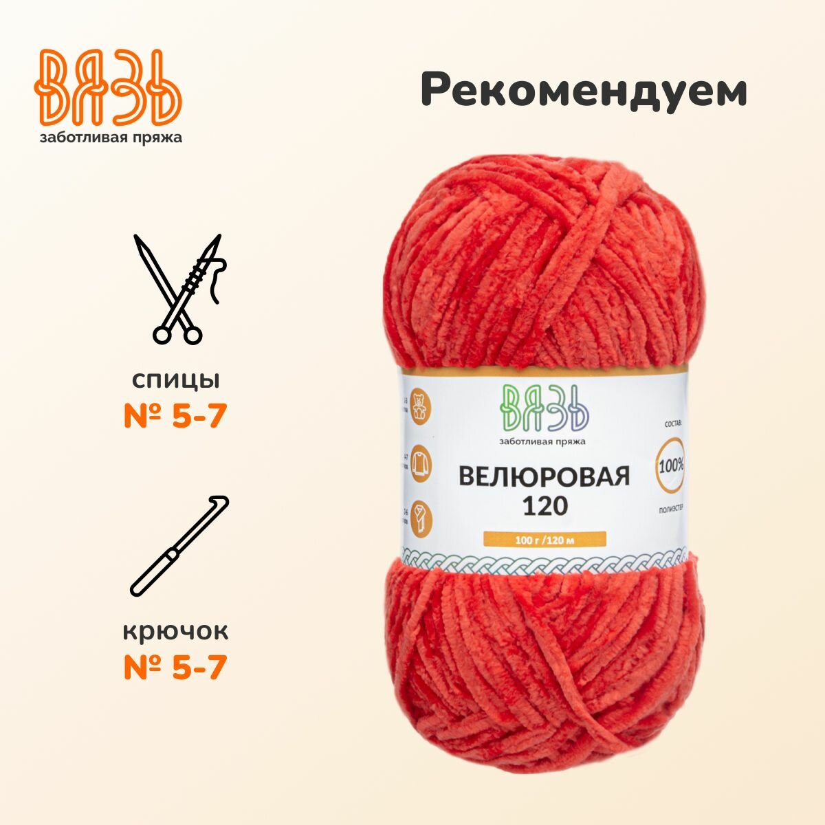 Пряжа для вязания Вязь 'Велюровая 120', 100г, 120м (100% полиэстер) (18 красный), 3 мотка информация: