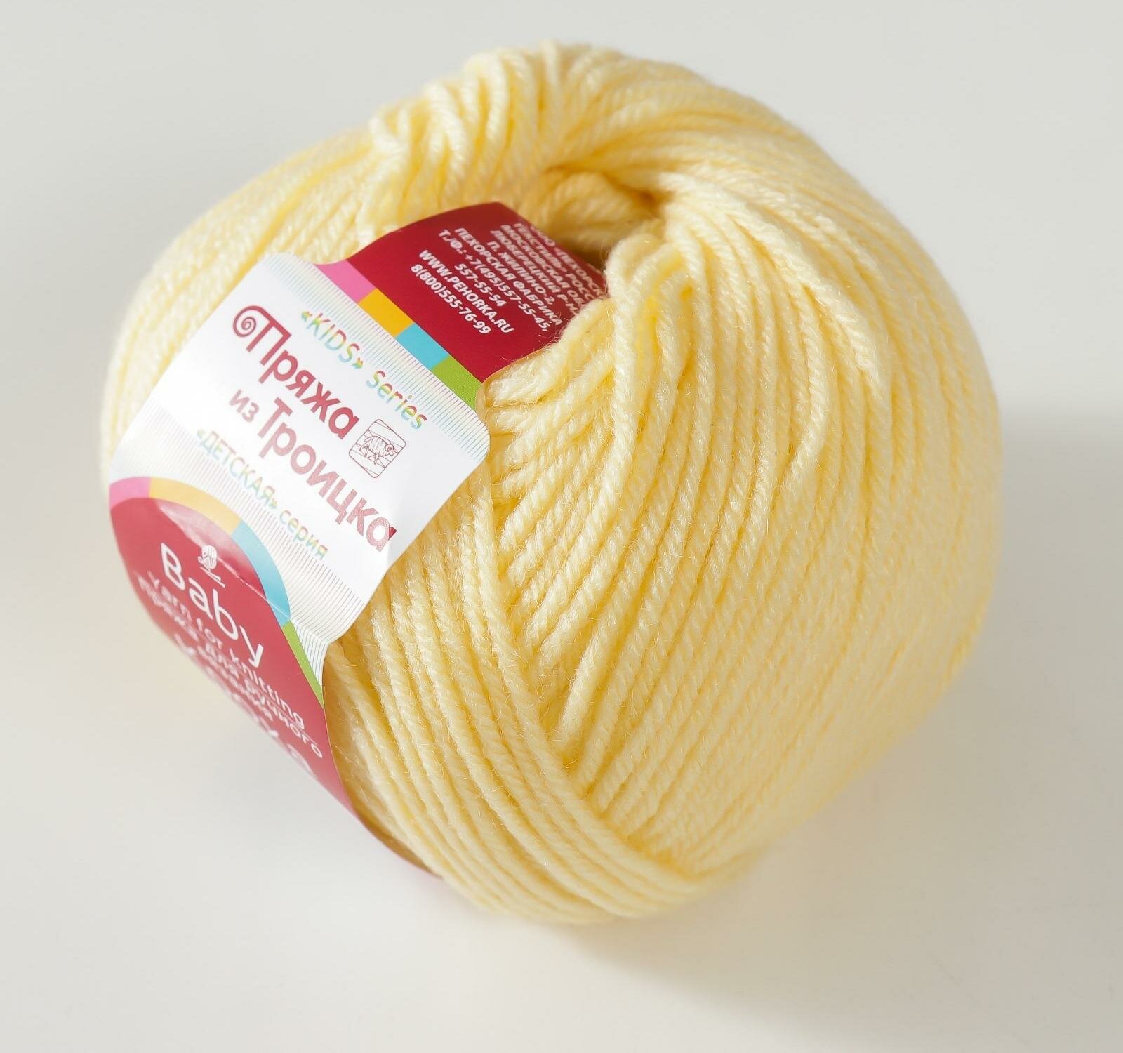 Пряжа Троицкая Кроха светлый лимон (0064), 80%акрил/20%шерсть, 135м, 50г, 1шт