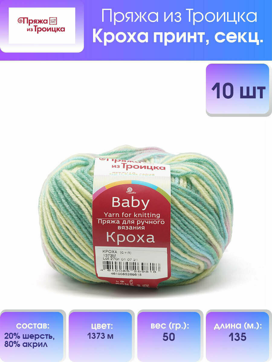 Пряжа для вязания из Троицка Кроха принт секционная, 50 г, 135 м (20% шерсть, 80% акрил) (1371м), 10 мотков