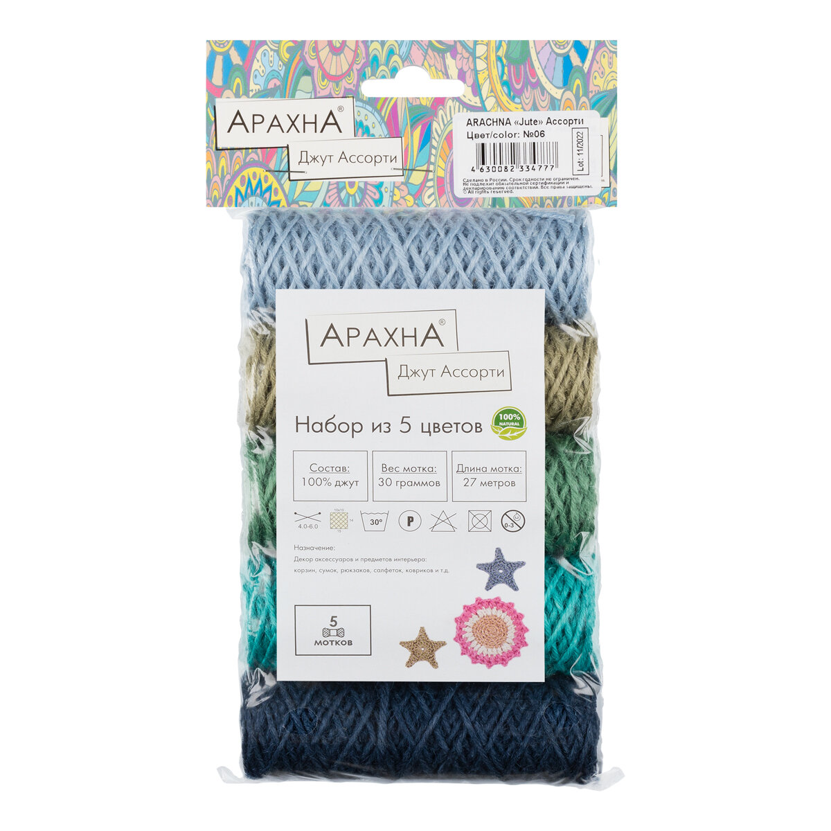 10 цен на Пряжа ARACHNA "Jute" Ассорти 100% джут 5 шт х 30 г 27 м ± 1 м № 06