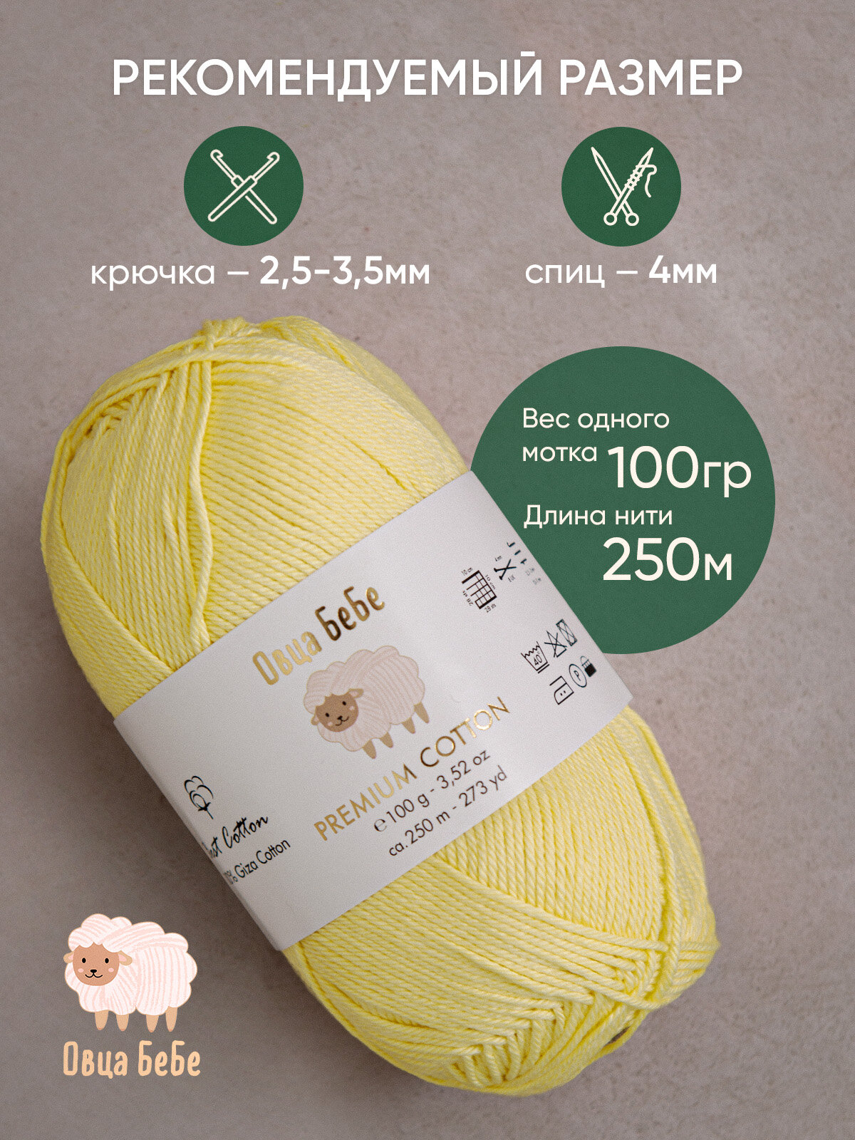 Отзывы на Пряжа Premium Cotton Giza, цвет светло-лимонный (набор из 2 шт), 100% хлопок