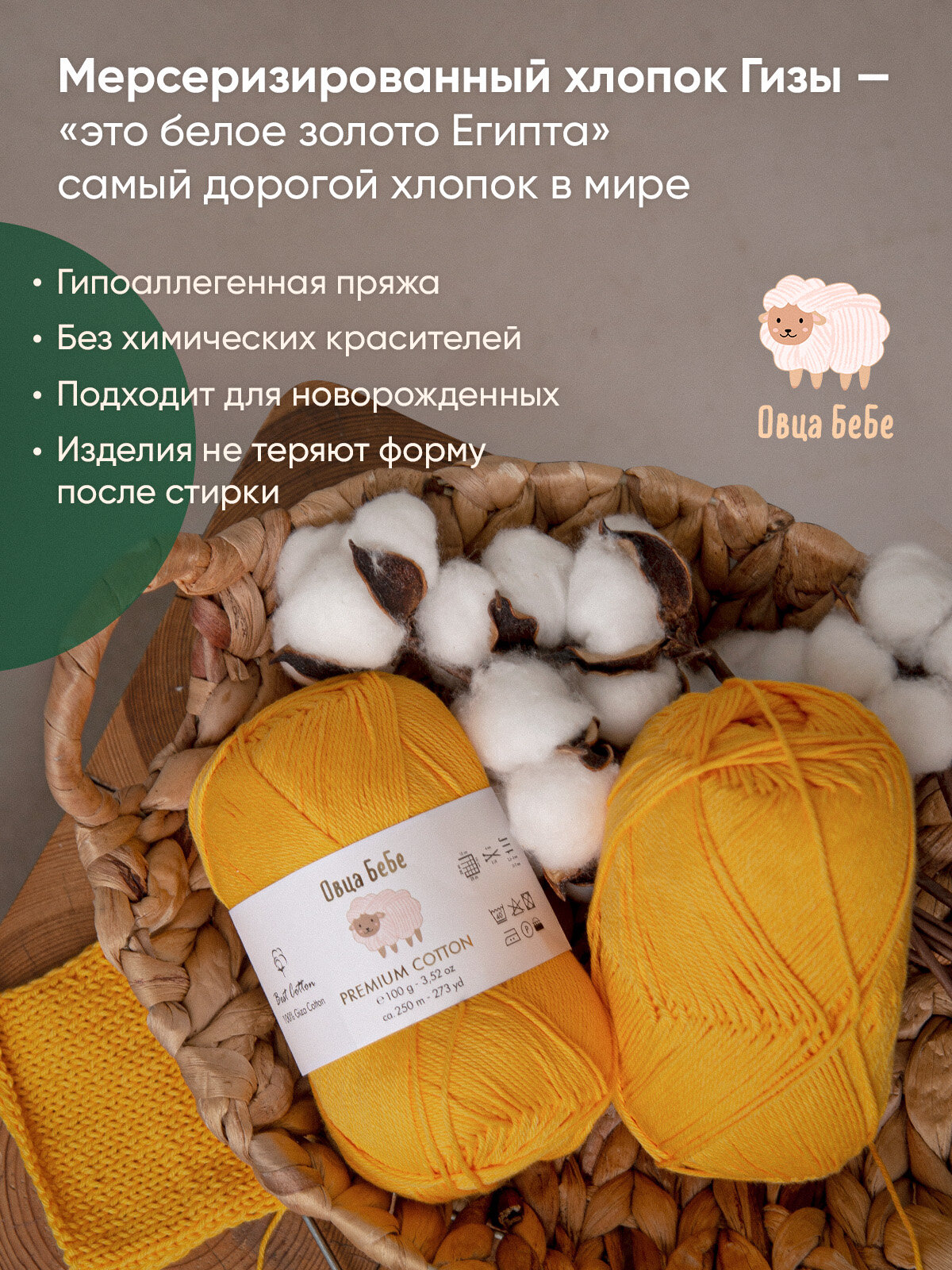 Пряжа Premium Cotton Giza, цвет солнечный (набор из 2 шт), 100% хлопок информация: