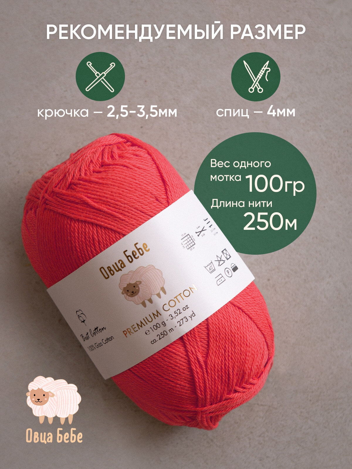 Отзывы на Пряжа для вязания Premium Cotton Giza, цвет красный (набор из 2 шт), 100% хлопок