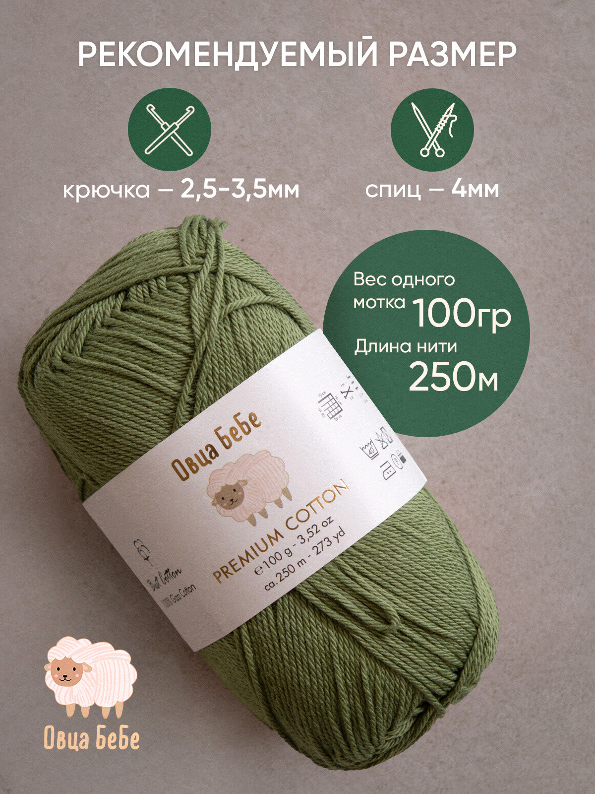 10 цен на Пряжа для вязания Premium Cotton Giza, цвет травяной (набор из 2 шт), 100% хлопок