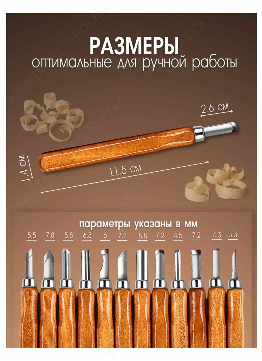 | Дополнительная информация | Многофункциональный набор. Подойдет не только для резьбы по дереву, но и для резки линолеума, мягкого пластика, пластилина, глины и других материалов. |