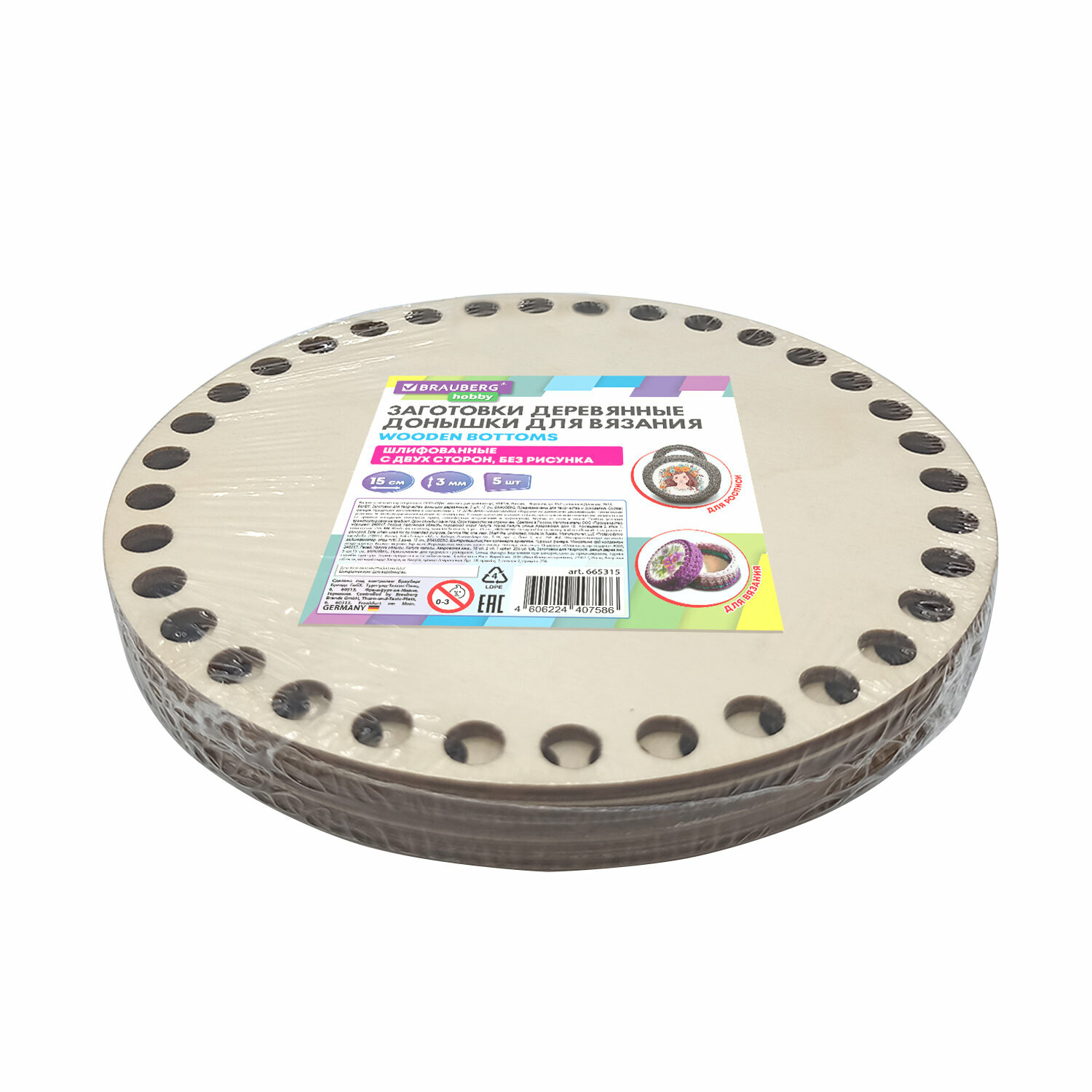 Отзывы на Донышки деревянные для вязания круглые, 5 шт., диаметр 15 см, BRAUBERG HOBBY, 665315