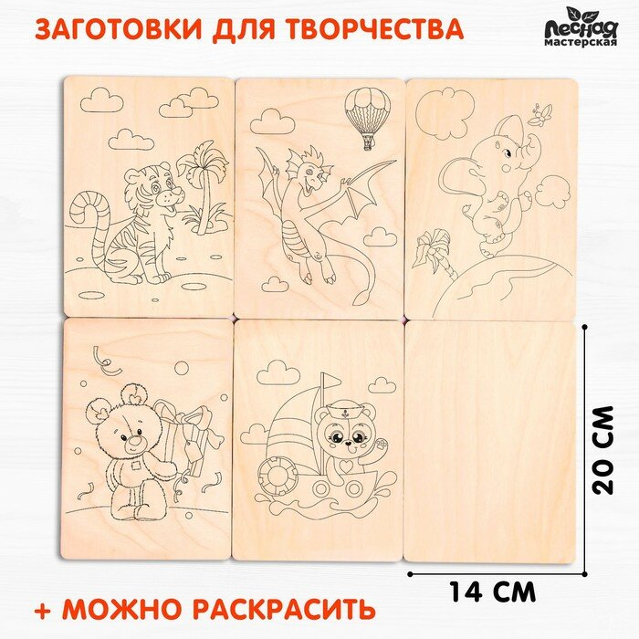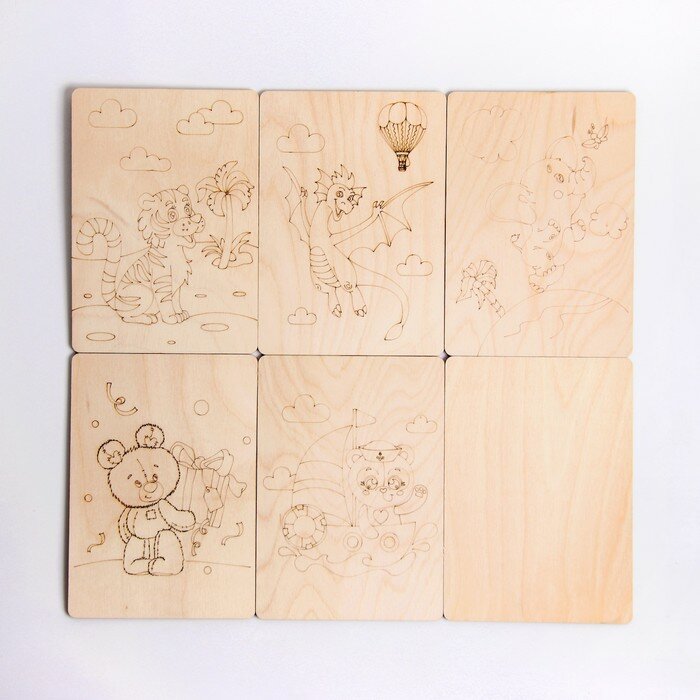 4шт Заготовки деревянные для выжигания "Сказочные мотивы",