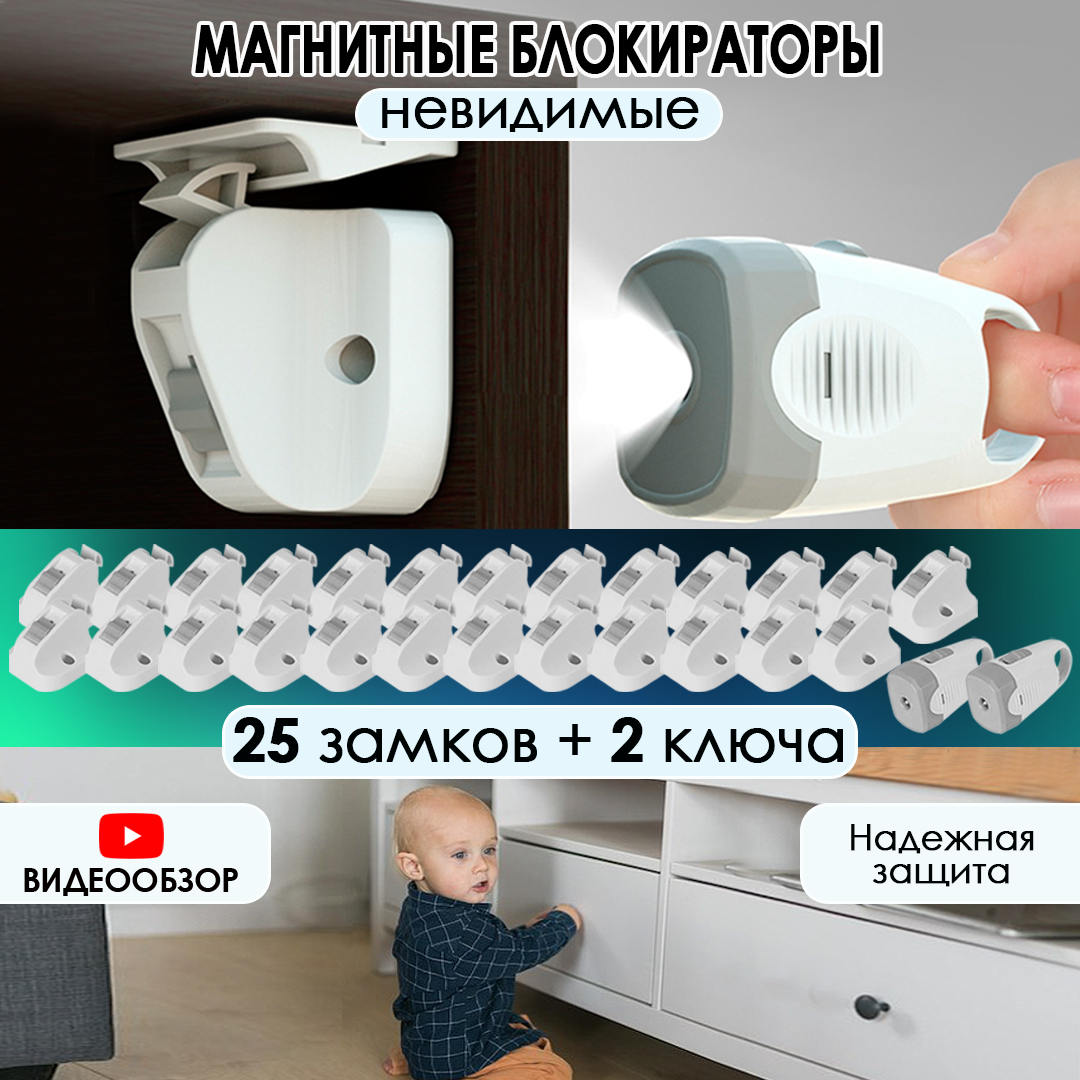 Магнитный блокиратор замок для защиты шкафов и ящиков, 25 замков и 2 ключа информация: