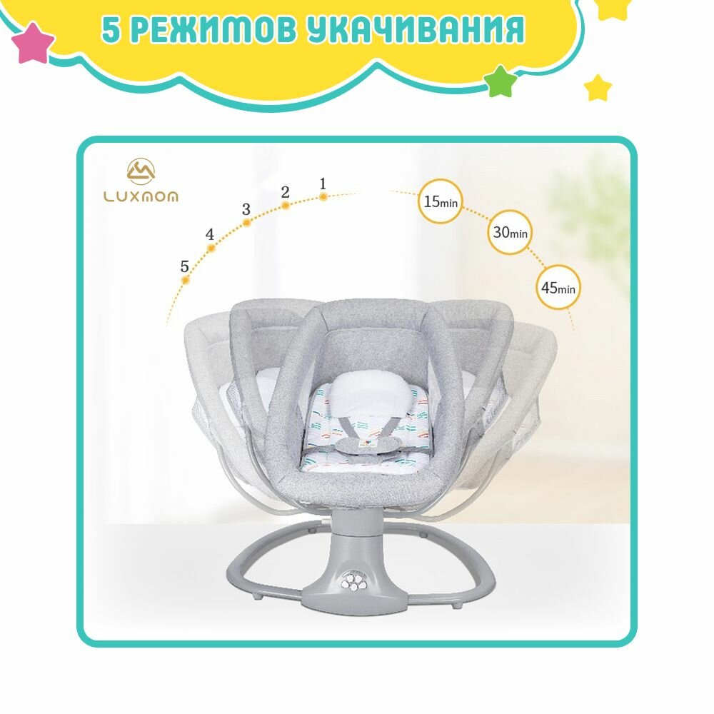 Электрокачели для новорожденного кресло качалка новогодние подарки, для малыша до 12 кг, с пультом управления, серый