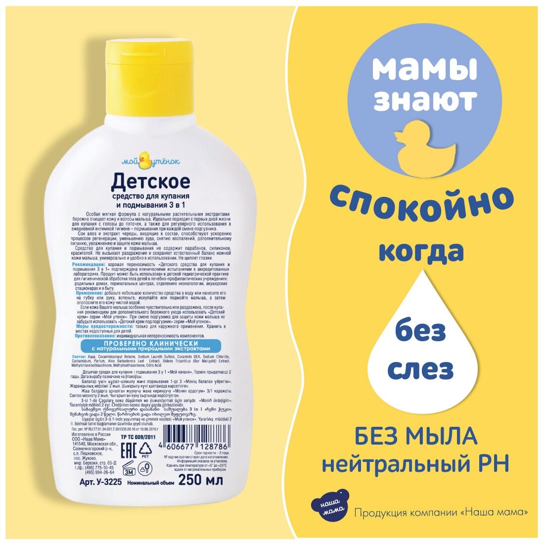 Мой Утенок Набор Средство для купания и подмывания 3 в1, 250мл 2шт информация: