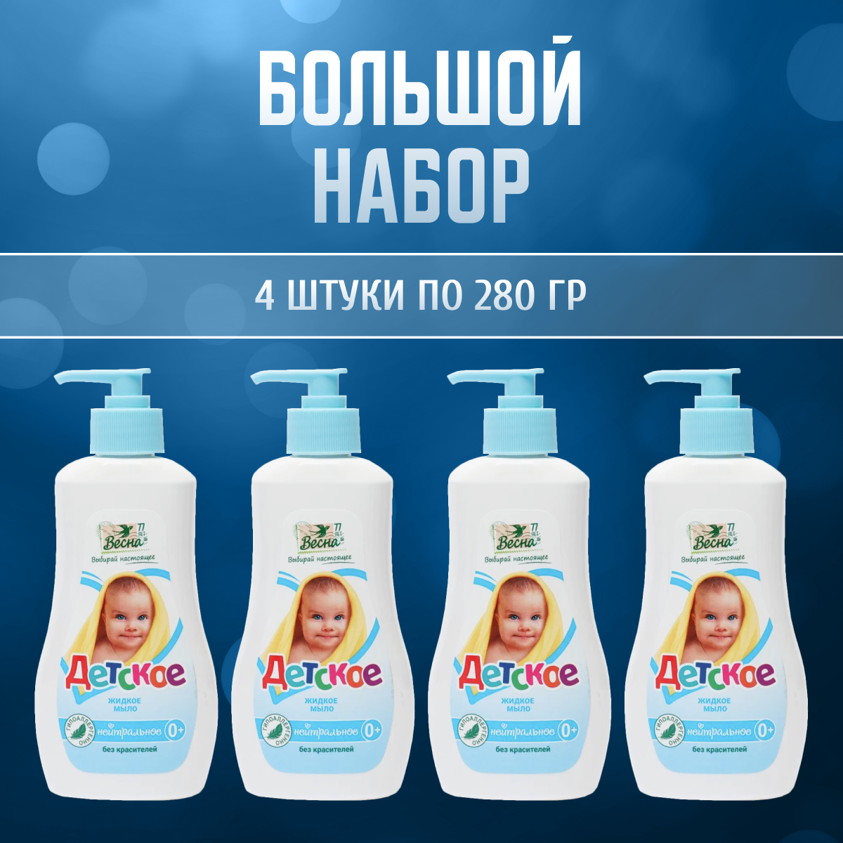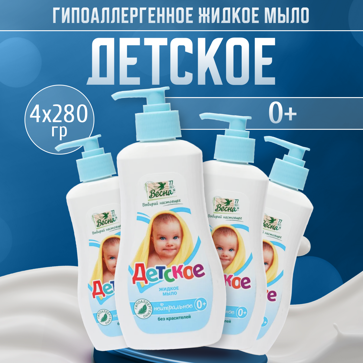 ПКК Весна мыло детское жидкое нейтральное гипоаллергенное натуральное для новорожденных с дозатором 280 г 4 шт информация: