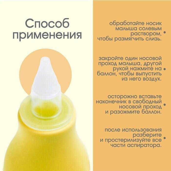 Детский назальный аспиратор с колпачком, соплеотсос груша для новорожденных, облегчает дыхание малыша, цвет желтый информация: