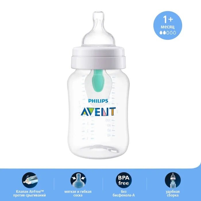Отзывы на Philips AVENT Philips Avent Бутылочка Philips Avent серии Anti-colic с клапаном Airfree 260мл с 1месяца SCF813/14