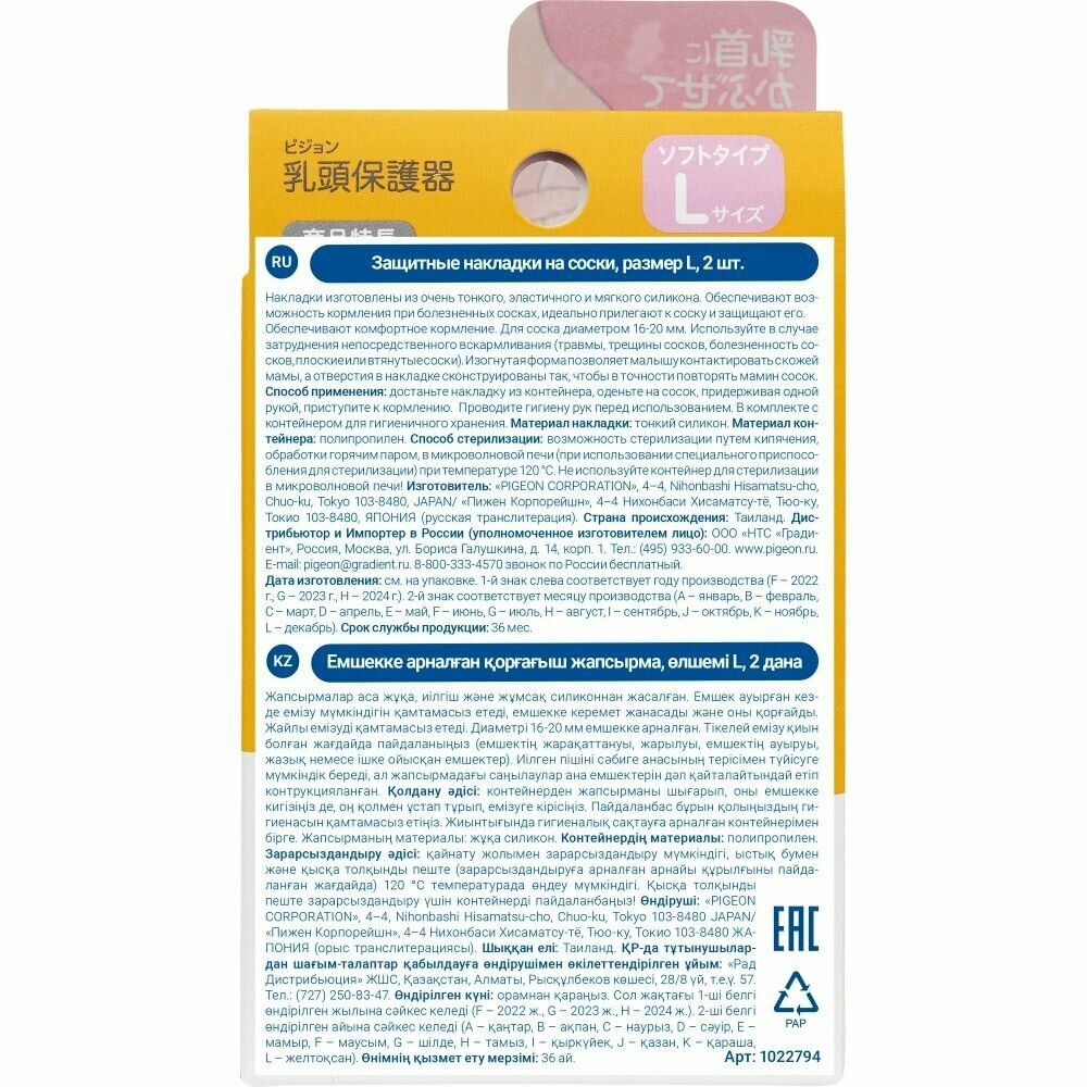Защитные накладки на соски Pigeon размер L, 16-20 мм, 2 шт (1022794) информация: