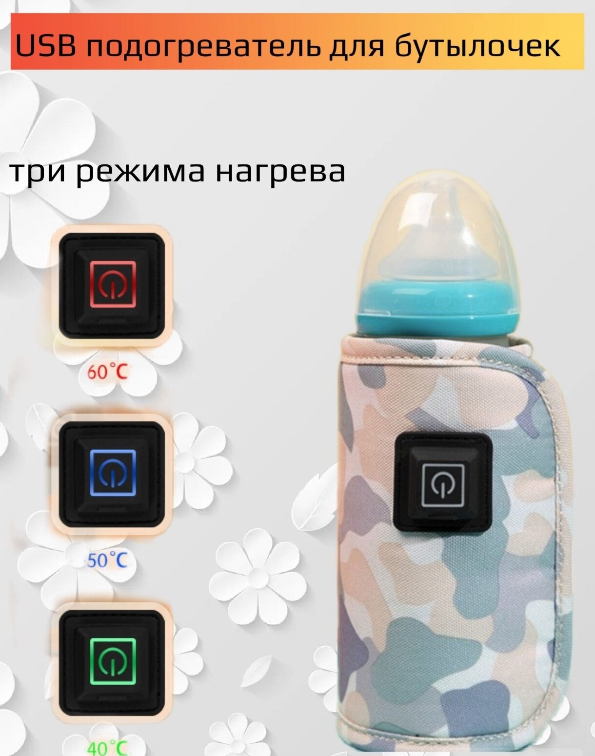 Отзывы на Нагреватель бутылочек для детского питания / 3 режима с USB зарядкой / термос- чехол розовый, 1ш