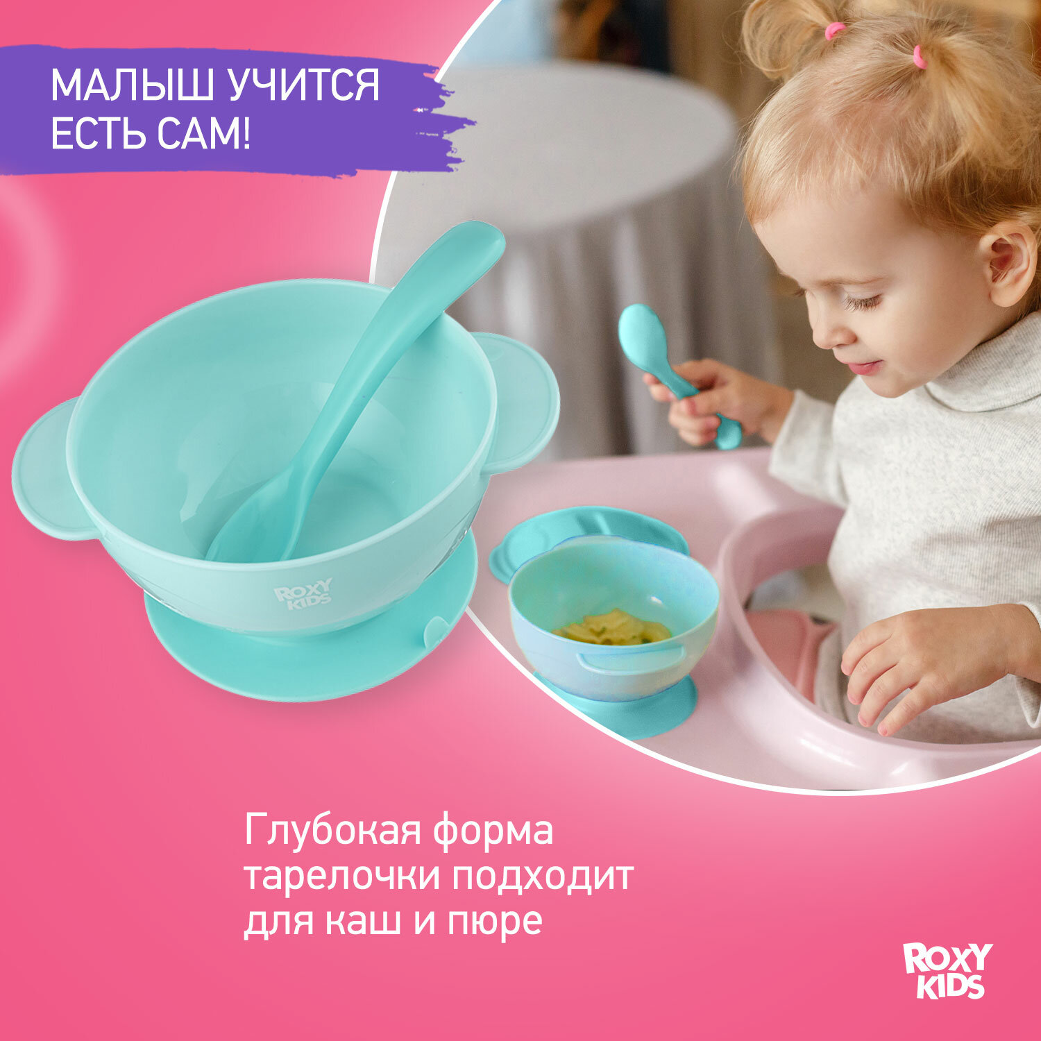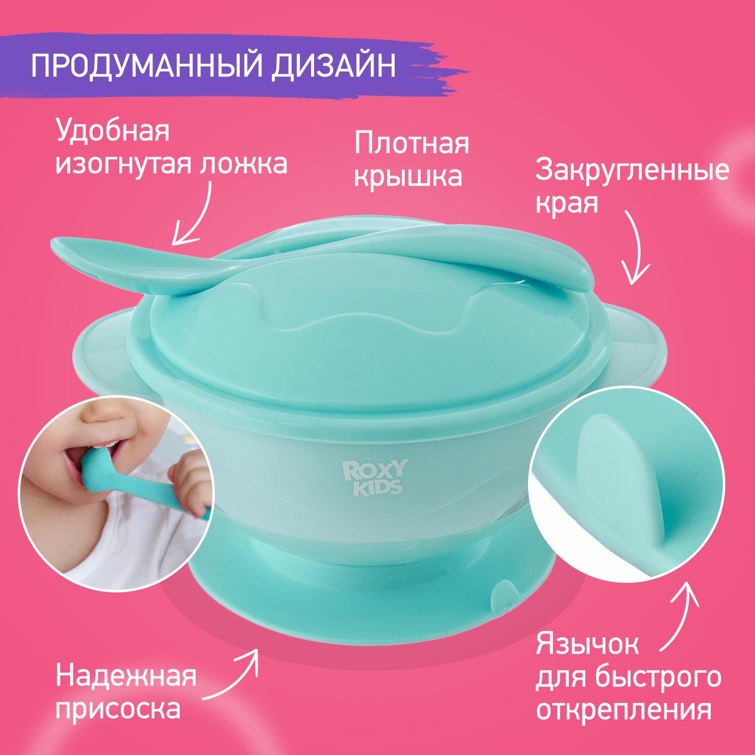 10 цен на Набор для кормления ROXY-KIDS тарелка на присоске крышка и ложка цвет голубой
