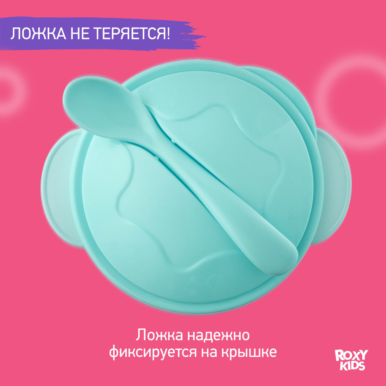 Набор для кормления ROXY-KIDS тарелка на присоске крышка и ложка цвет голубой информация:
