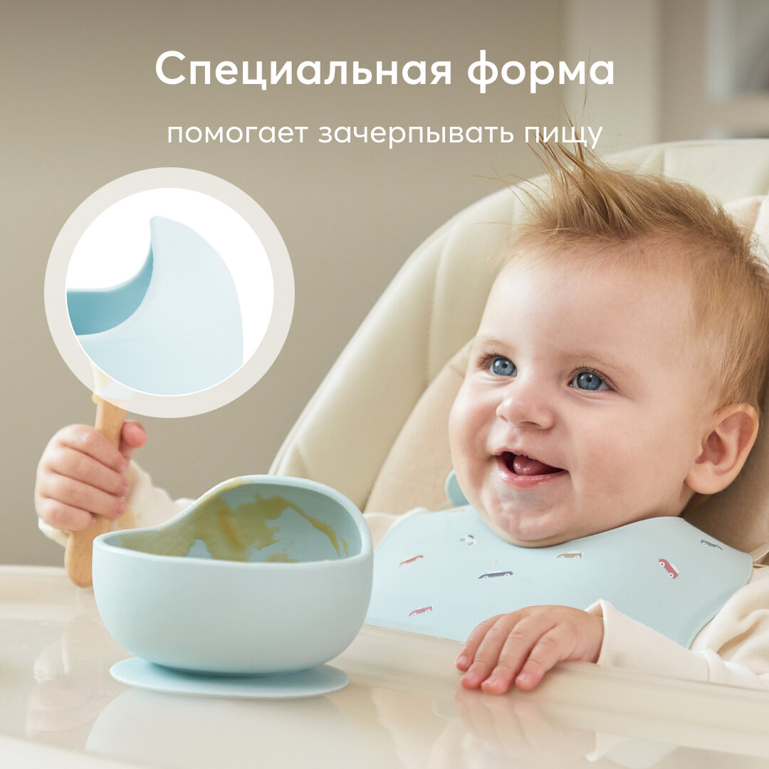 Отзывы на 15064, Набор посуды для детей Happy Baby, миска на присоске и ложка, тарелка непроливайка, голубая