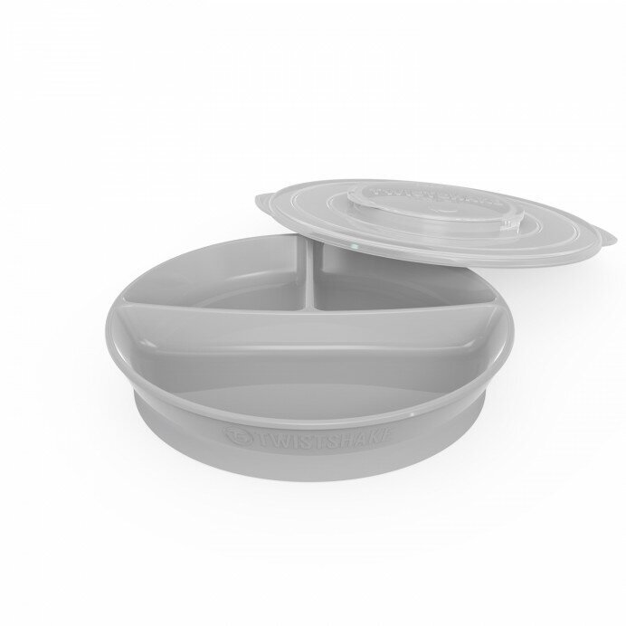 Тарелка детская с разделителями с крышкой, 390 мл, Twistshake, цвет: серый информация: