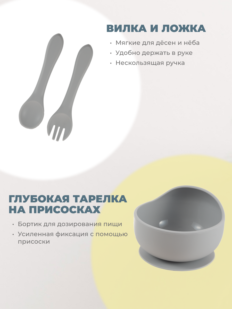Отзывы на Детский силиконовый набор посуды для кормления малыша 5 предметов