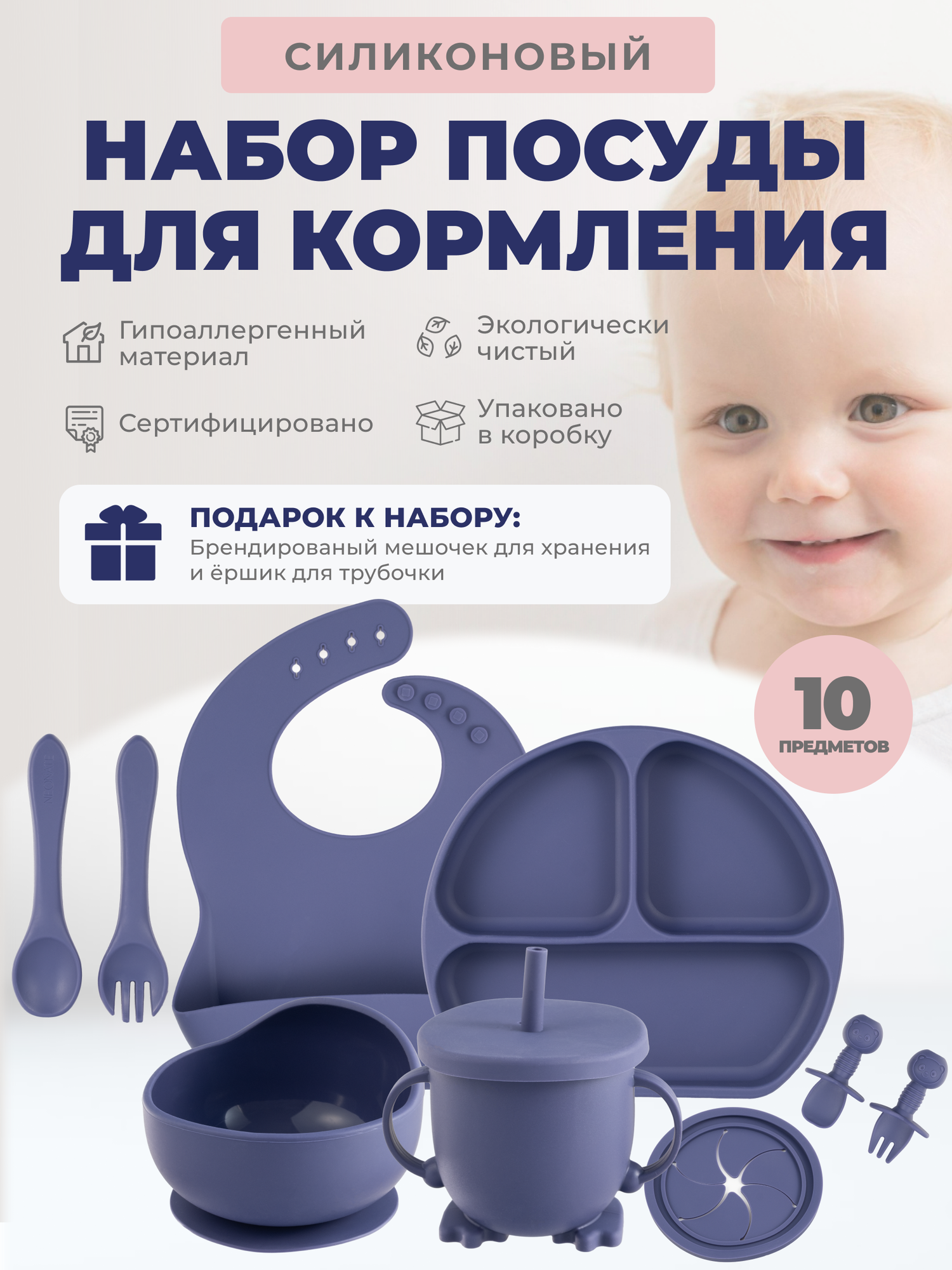 Детский силиконовый набор посуды для кормления детей 10 предметов информация: