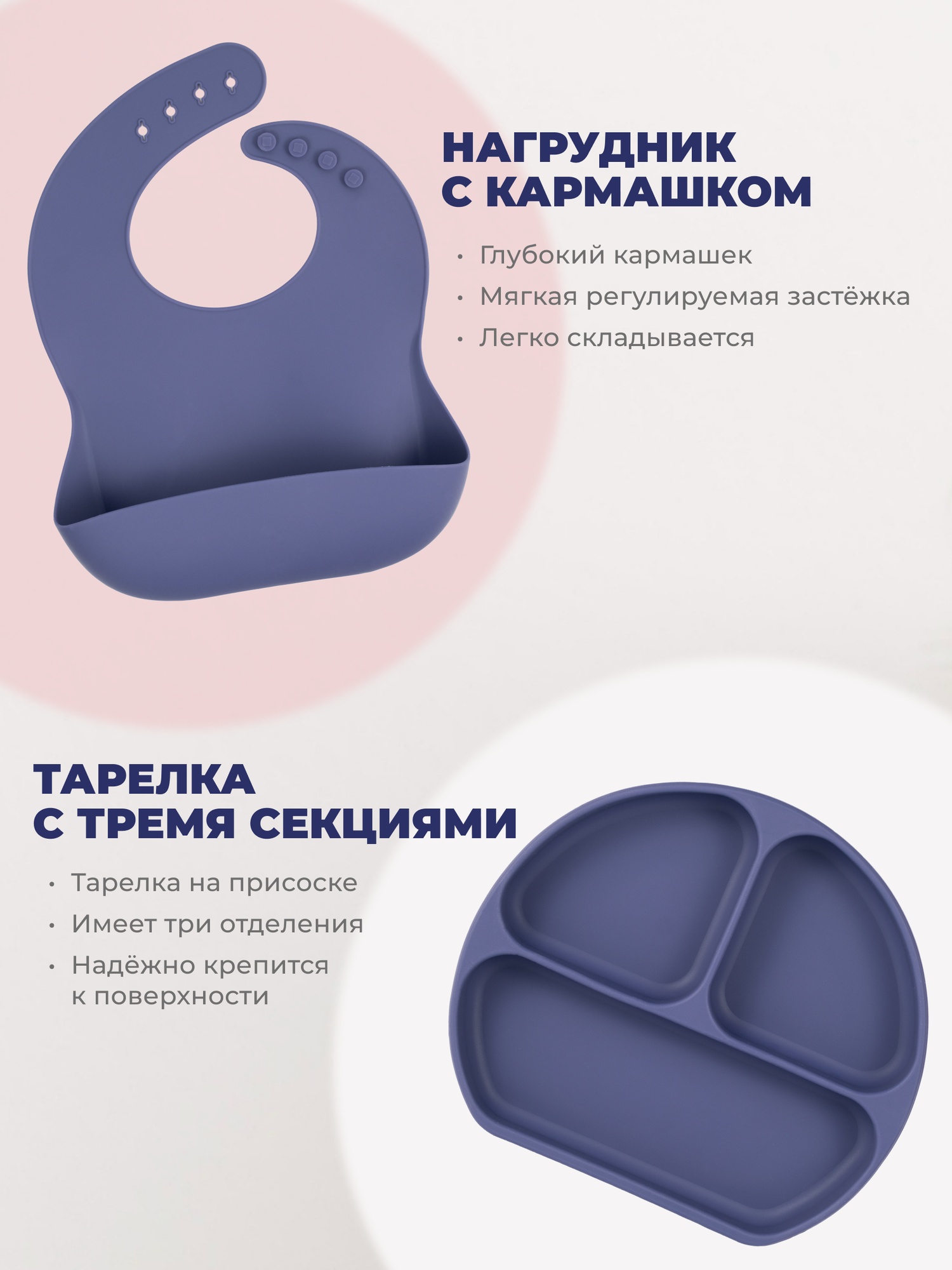 | Особенности | использование в СВЧ / можно мыть в посудомоечной машине / можно стерилизовать / на присоске / тарелка с секциями |
