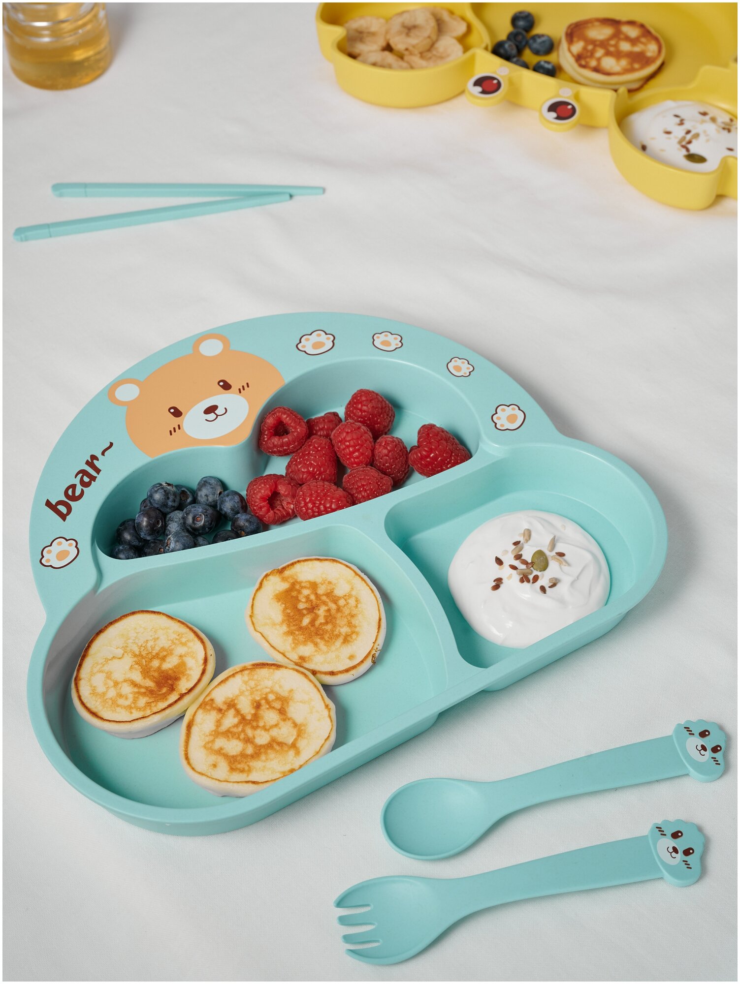 Отзывы на Детская посуда для кормления набор Медвежонок детская тарелка, ложка, вилка, гобубая