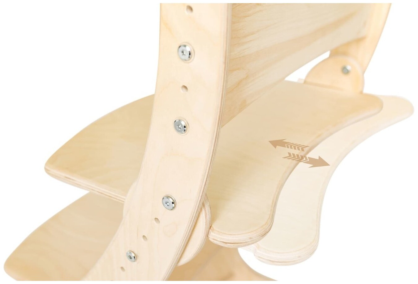 | Дополнительная информация | до 3 лет рекомендуется использовать дополнительные аксессуары: ограничитель и столик для кормления, подушечки на сиденье; материал: березовая фанера высшего сорта + МДФ класса Е1; максимальная высота сиденья от пола: 56 см; упаковка: картонная коробка; габариты упаковки: 90х50х8 см |