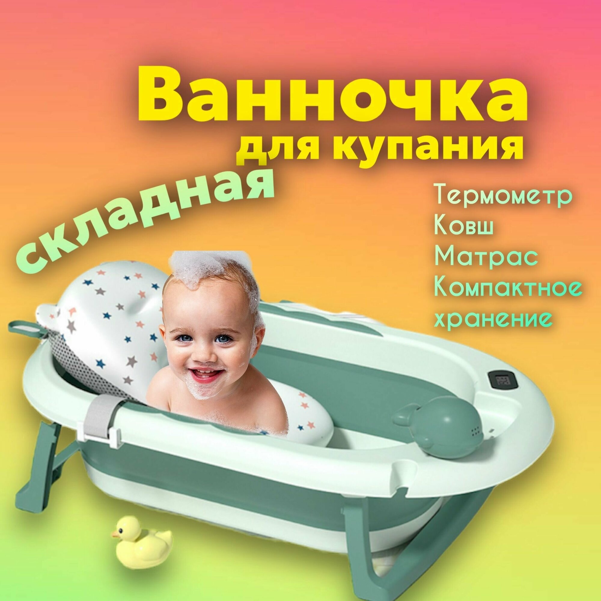 Отзывы на Ванночка для купания новорожденных детская складная с термометром Luxmom