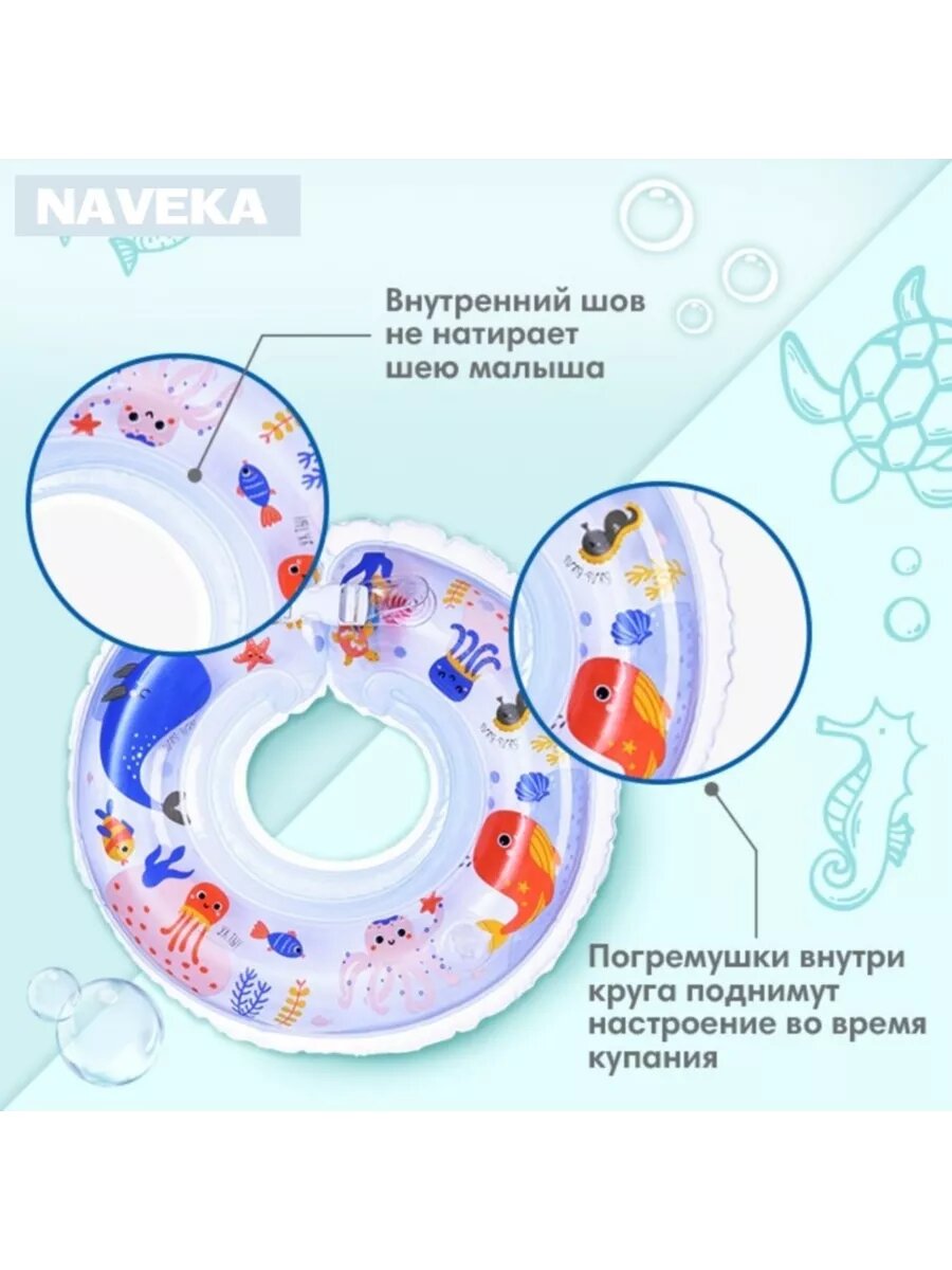Круг детский на шею, для купания, «Подводный мир», от 1 мес, двухкамерный, с погремушками