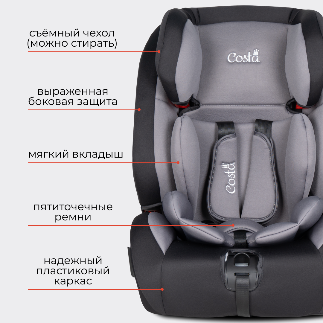 Автокресло детское Costa HD-02, крепление ISOFIX, группа 1/2/3, от 9 месяцев до 12 лет, от 9 до 36 кг, цвет черно-серый информация: