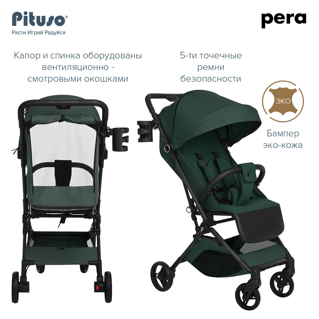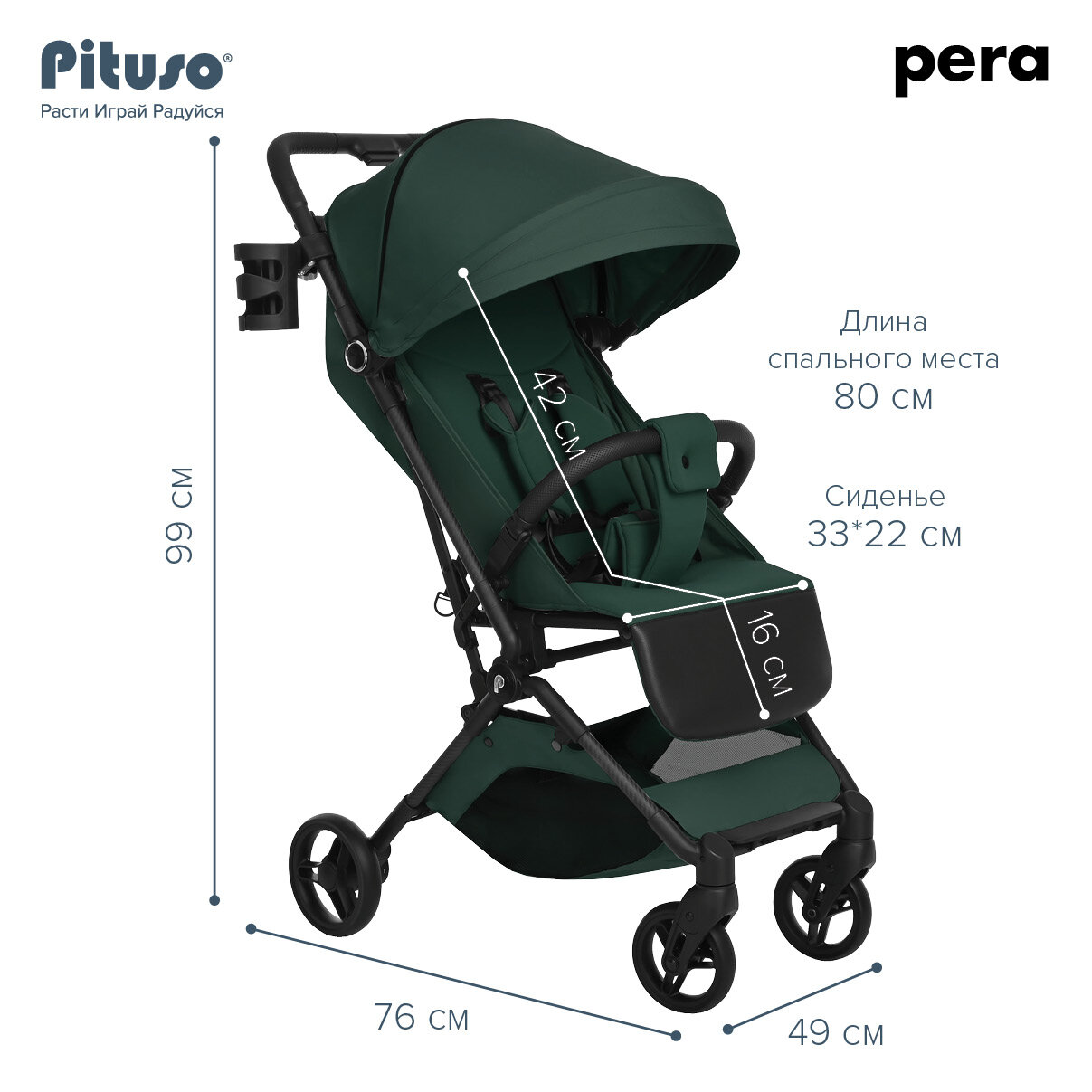Отзывы на Коляска прогулочная Pituso Pera детская всесезонная Army green/зелёный
