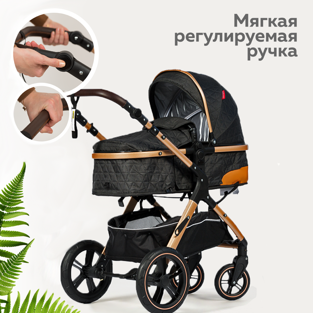 Коляска для новорожденных 3в1 трансформер с сумкой, черная информация: