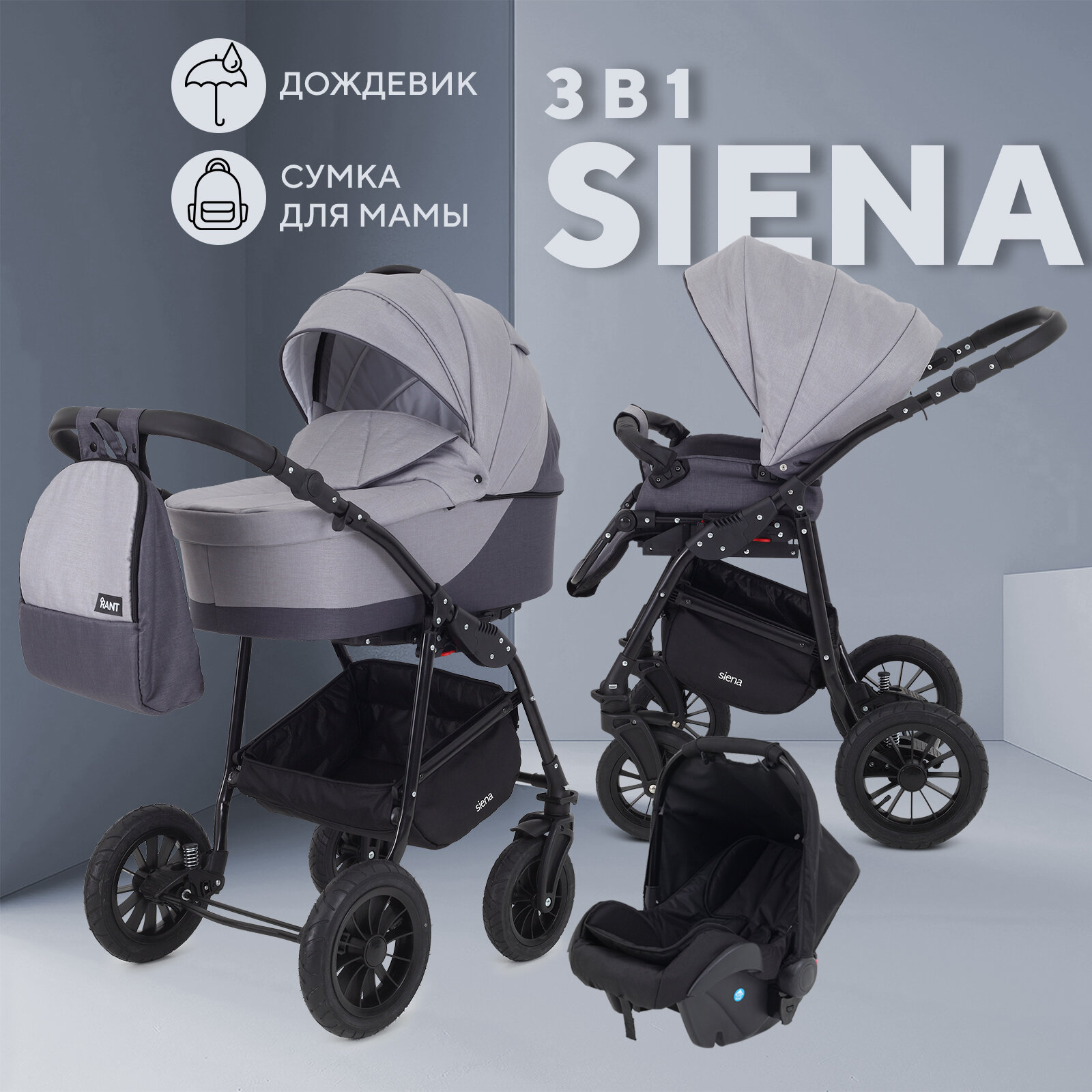 10 цен на Коляска RANT SIENA NEW (3-в-1) 02 серый-св.серый