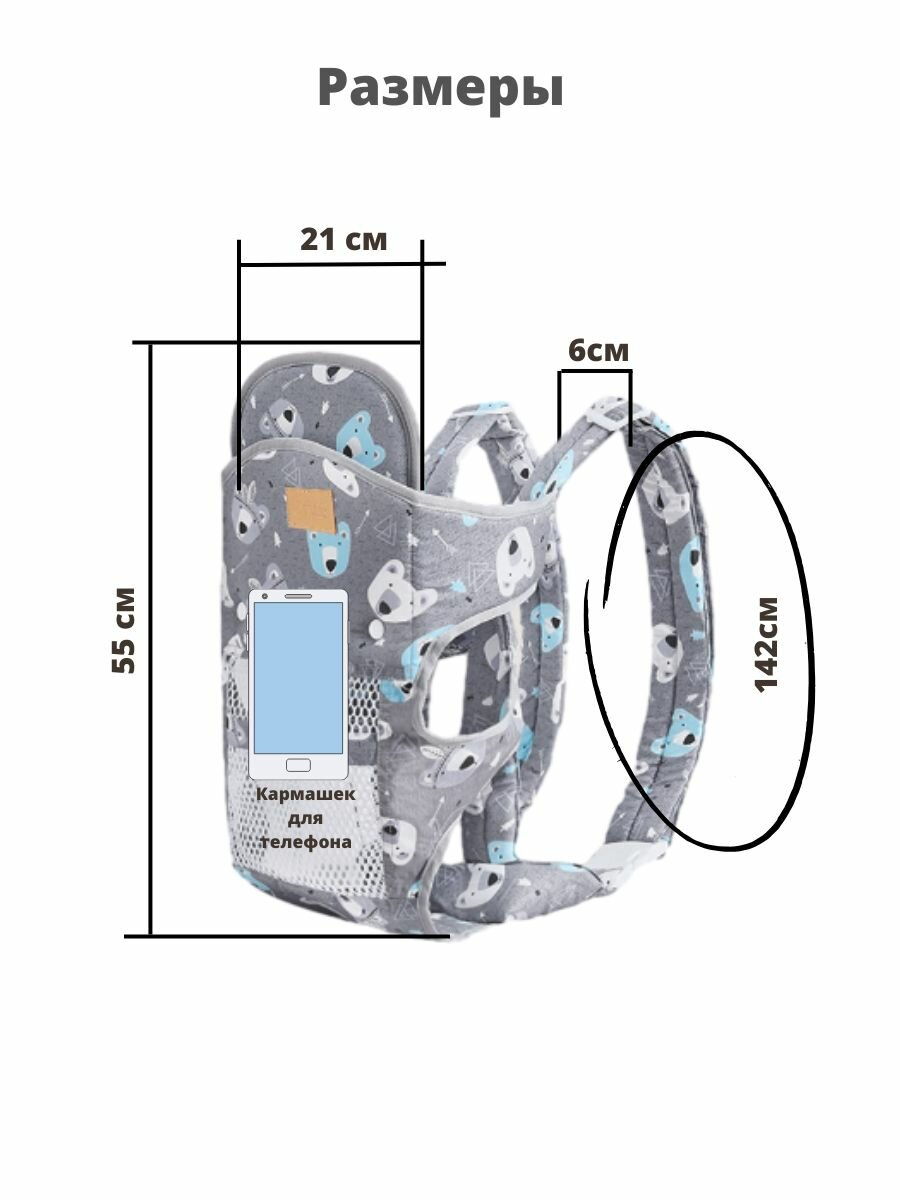 Рюкзак кенгуру для детей 3,5-9 кг / Эргорюкзак переноска для малышей 3-12 месяцев
