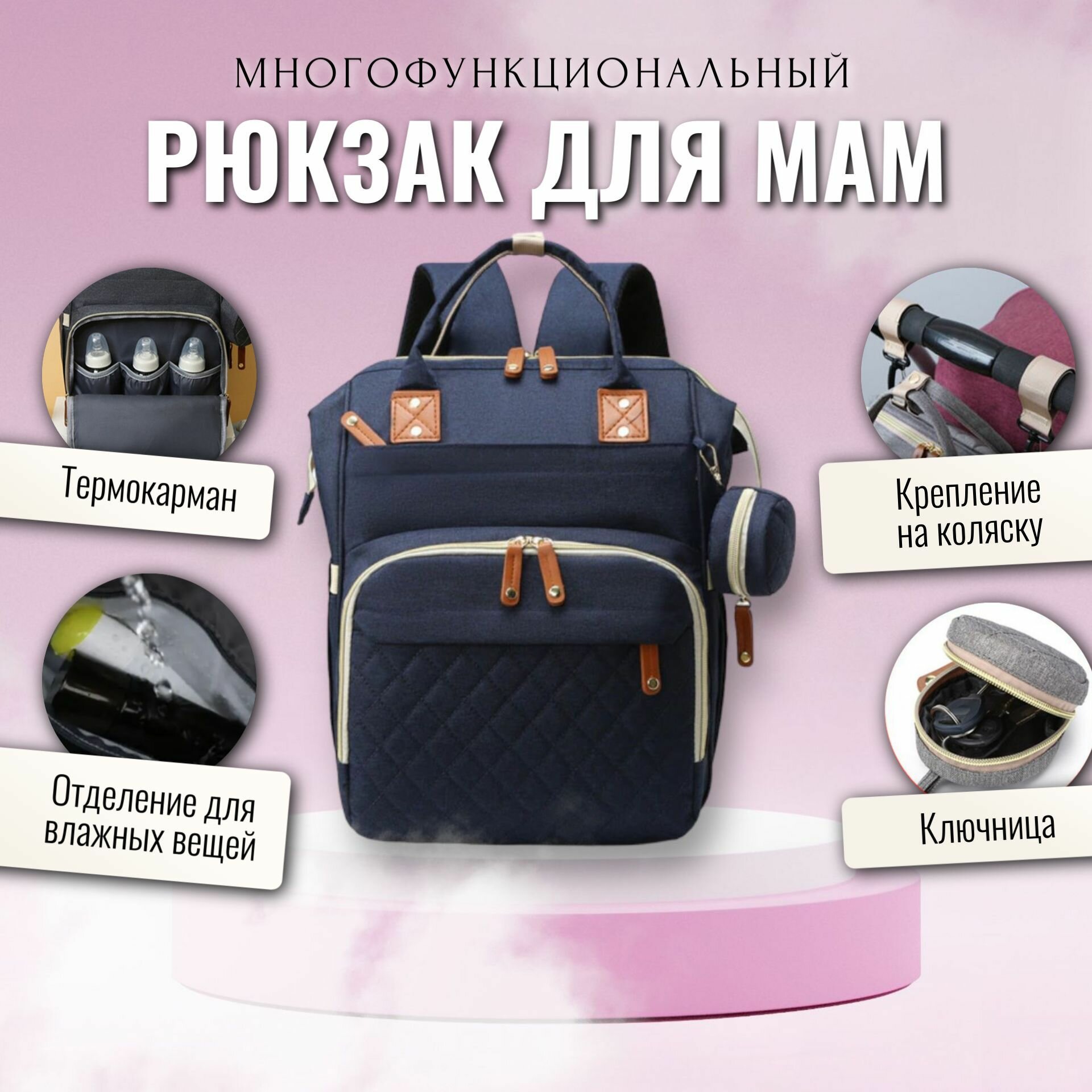 Рюкзак для мамы / Сумка на коляску для мамы / Сумка-рюкзак универсальный женский, темно-синий информация: