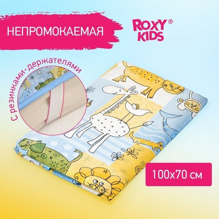 Клеёнка-наматрасник Roxy-Kids Zoo, с резинками-держателями, желто-синий, ПВХ покрытие, 70*100 см